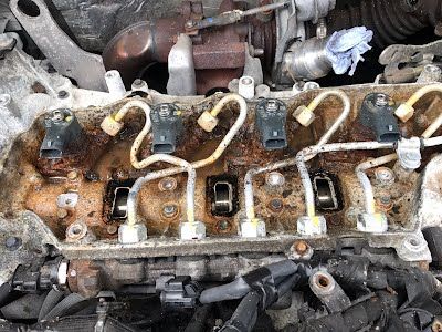 The first two photos show the infamous "black death" where engine gasses escape past the injector seals and for a carbon bases mess on the top of the engine.